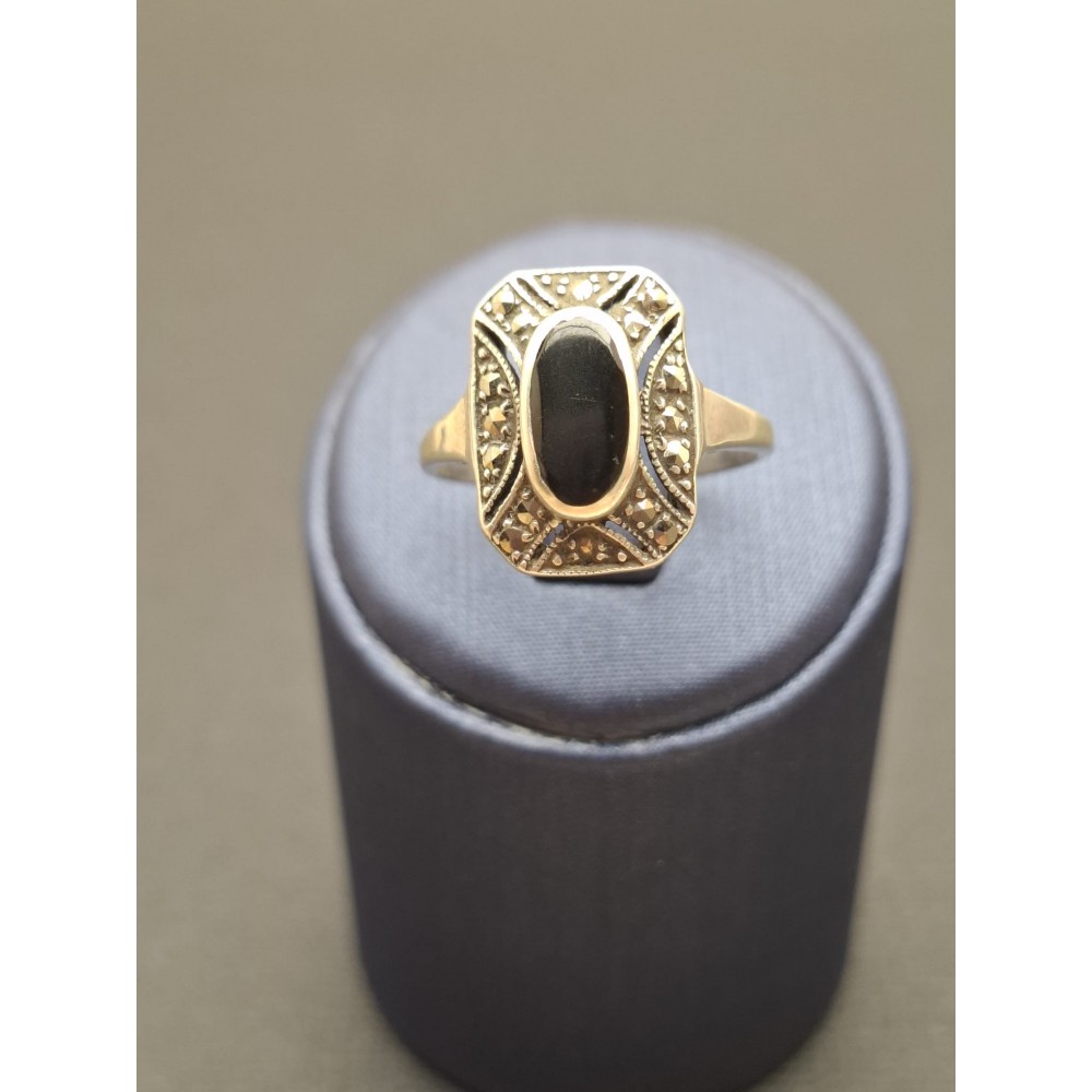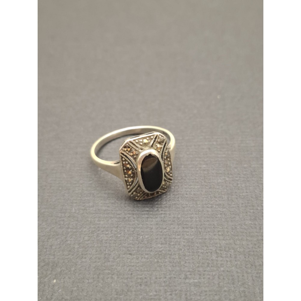 Vintage gredzens / sudrabs 925 / markazīti / oniks. Izm. 19.5 . Svars 3.14 gr.