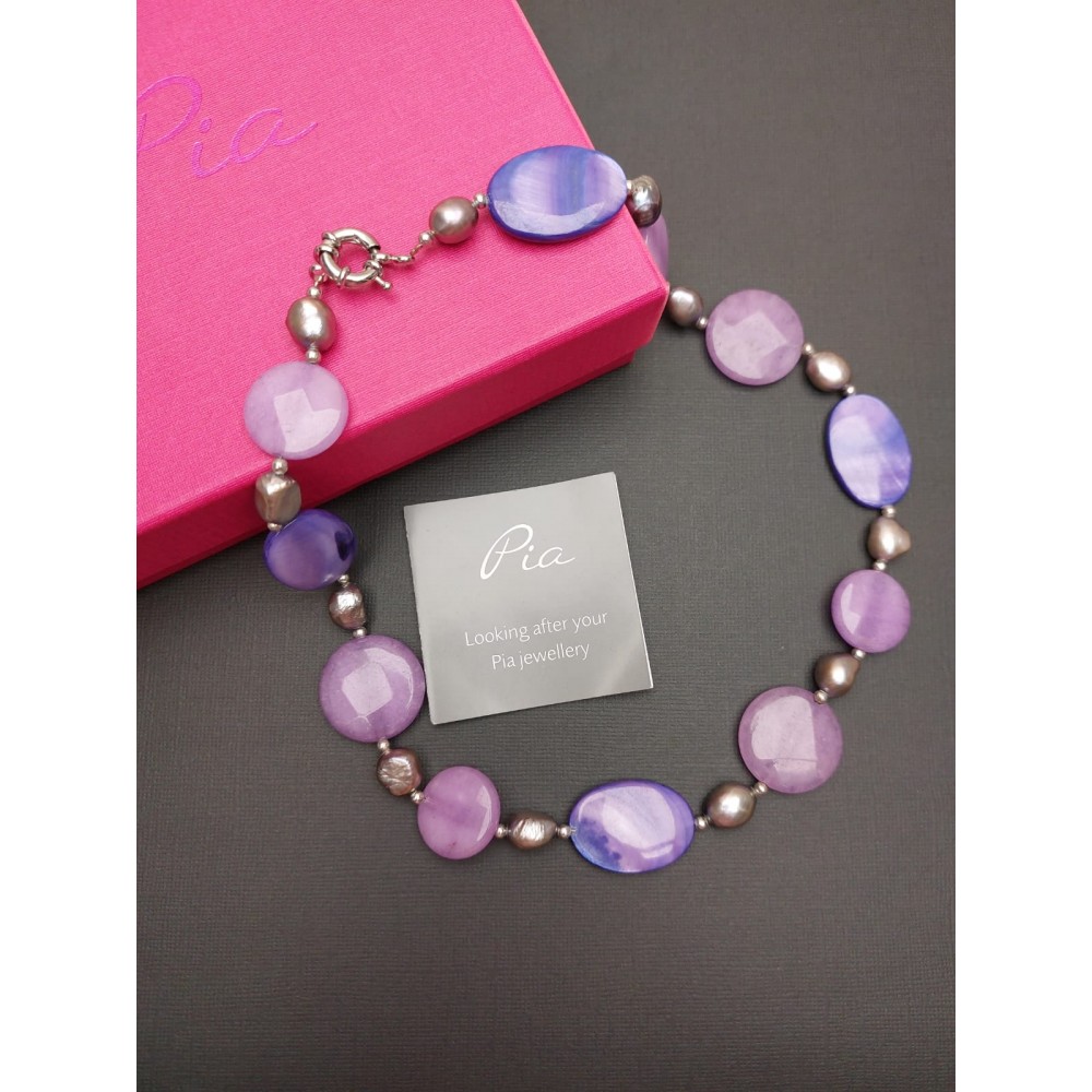 Kaklarota ( perlamutrs / ametists / dabiskās pērles ). Garums 46 cm.